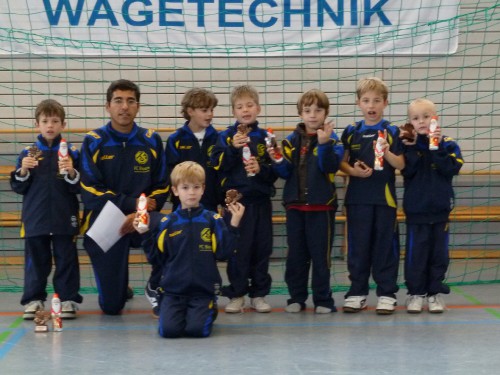 Am So, 28.11.2010 nahm unsere U8 am F2-Junior-Cup 2010 (2003er Jahrgang) in Waldkraiburg teil. Dabei erreichte sie Platz 5 unter 8 teilnehmenden Mannschaften. Wie immer waren wir erneut die jüngste Mannschaft. Leider fehlte uns zuletzt ein Punkt für das Halbfinale, so dass wir um Platz 5 spielen mussten, das wir im Elfmeterschießen mit 3:1 für uns entschieden.