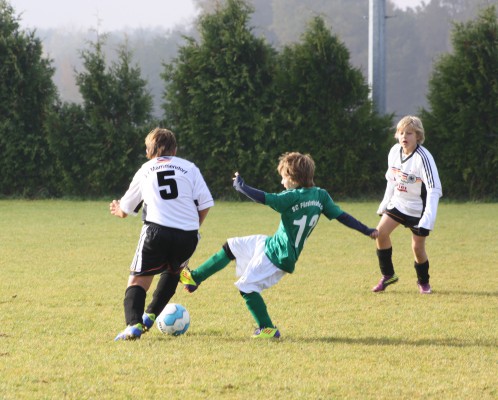 Die Jungs agierten von Beginn an ballsicher und mit viel Druck. Die Gastgeber mussten sich den Angriffen der Brucker erwehren und kamen vor allem durch ihren schnellen Stürmer zu gefährlichen Kontersituationen, die im Regelfall die gut organisierte Gästeabwehr abfangen konnte. Nach 10 Minuten ging der SCF verdient in Führung und wenige Minuten später waren die Kreisstädter nach einem Konter, der im ersten Versuch noch abgewehrt werden konnte, mit der zweiten "Welle" erfolgreich. Kurz vor Ende des ersten Spielabschnitts stellten die Brucker den 3 : 0 Halbzeitstand her.